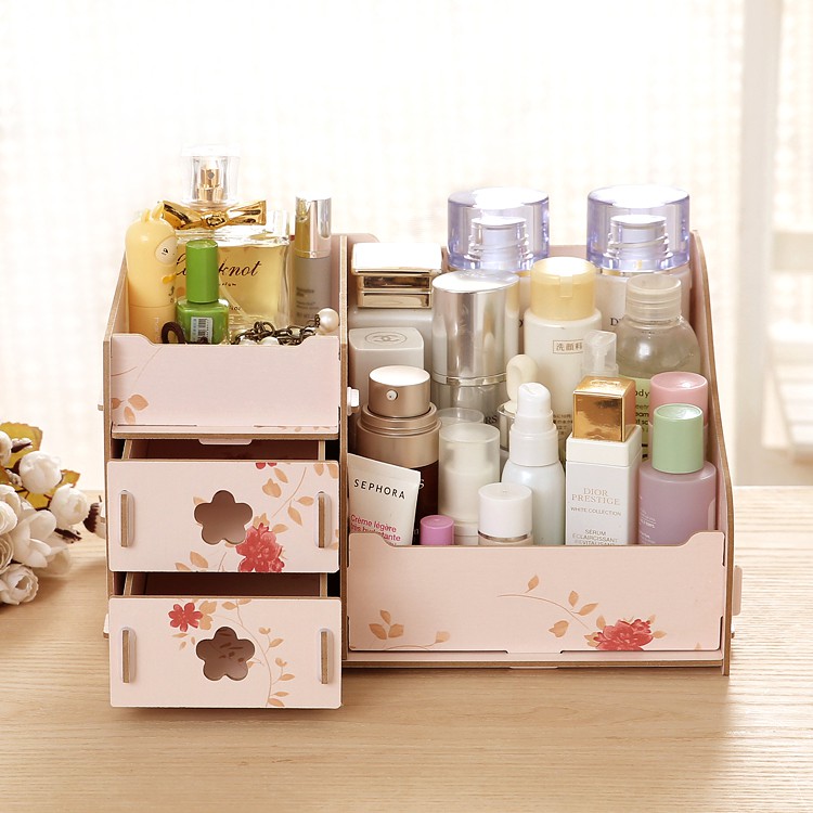 Giới thiệu Kệ gỗ đựng đồ trang điểm khay trang trí để mỹ phẩm trang điểm để bàn bằng gỗ mini siêu cute đáng yêumeomeo