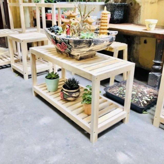 Kệ gỗ hình chữ nhật 2 tầng_kệ decor phong cách hàn quốc
