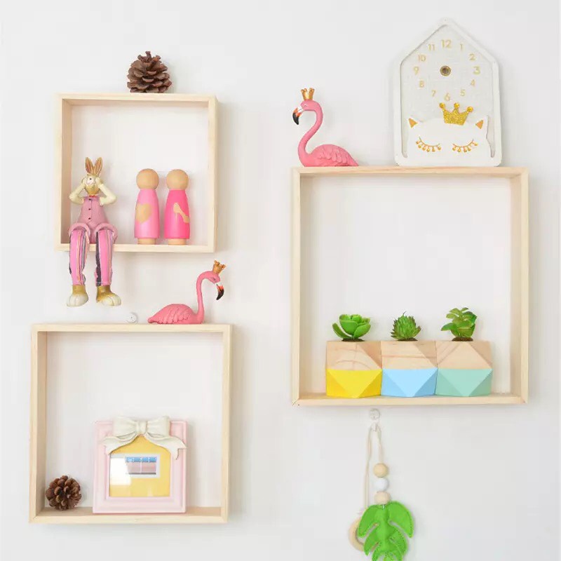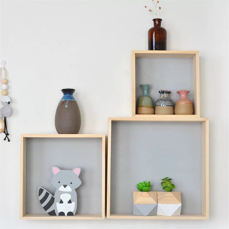 Kệ Gỗ Hình Vuông Decor Nhà Cửa Phong Cách Bắc Âu - Giá Gỗ Treo Tường Trang Trí Tặng Kèm Đinh Vít