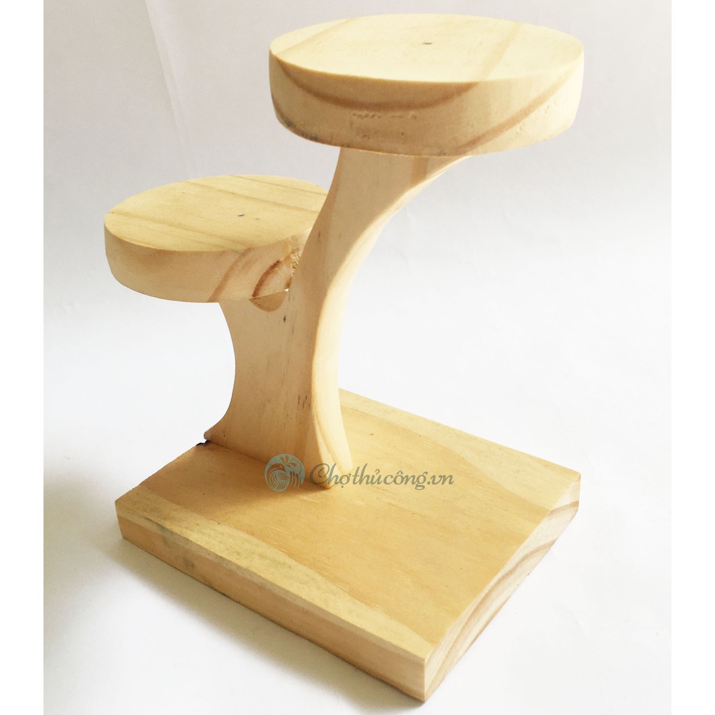 Giới thiệu Kệ gỗ mini 2 tầng gỗ thông tự nhiên 16x16x8cm