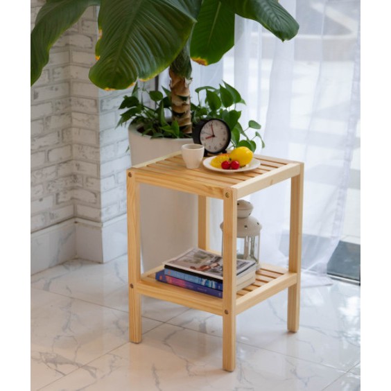 Kệ gỗ tab đầu giường 2 tầng tự lắp ráp - gỗ thông tự nhiên - kệ vuông 35*35*50