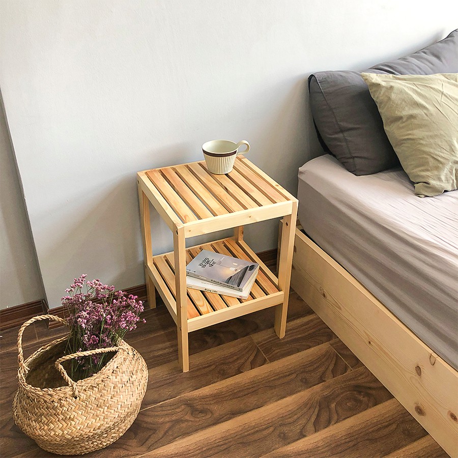 Kệ gỗ tab đầu giường FEGO 2 tầng tự lắp ráp - gỗ thông tự nhiên/ Nội thất decor phòng ngủ
