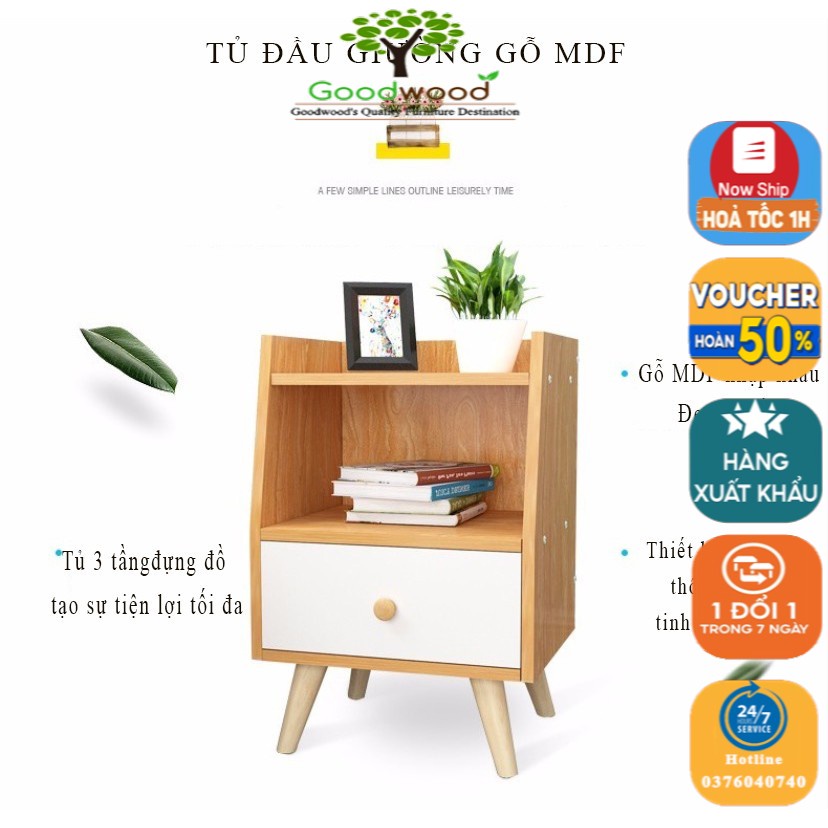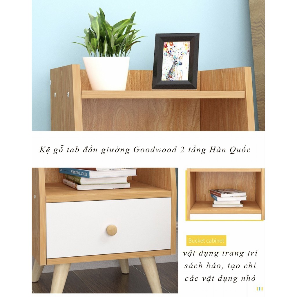 Kệ gỗ tab đầu giường Goodwood 2 tầng tự lắp ráp - TỦ ĐẦU GIƯỜNG GỖ MDF SIÊU BỀN DÁNG CHÂN GỖ SIZE TO