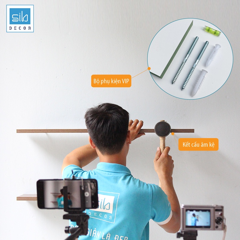 - Kết cấu giấu chân sử dụng phụ kiện đặc biệt của SIB Decor rất chắc chắn cho khả năng chịu lực lên đến 15kg mỗi kệ và cực kỳ thẩm mỹ khi không nhìn thấy bất kỳ ke/giá đỡ nào.