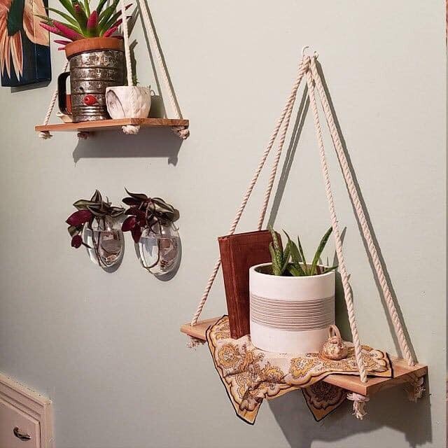 Nhà cửa & Đời sống > Nội thất > Kệ & Giá || Kệ gỗ thông treo tường 1 tầng TẶNG kèm dây thừng kích thước ván gỗ 20x10cm Tê Decor OfficialCòn hàng