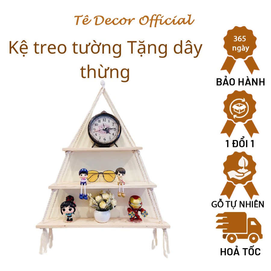 Giới thiệu Kệ gỗ thông treo tường Tee Decor - Giá treo kèm dây thừng trang trí phong cách Hàn Quốc - Kt 20x10cm - Bh 1 năm