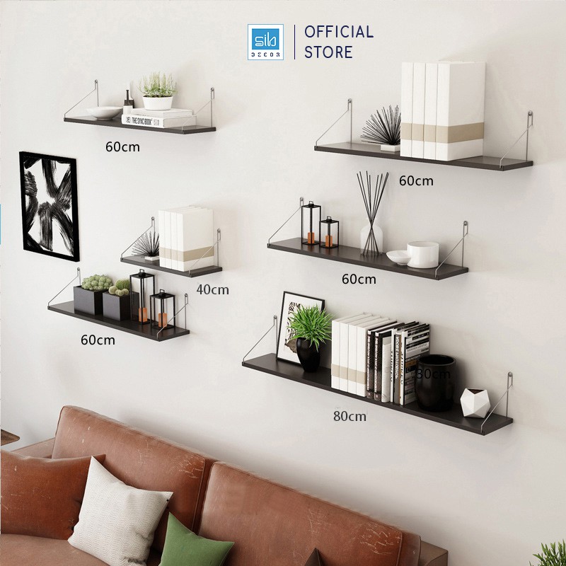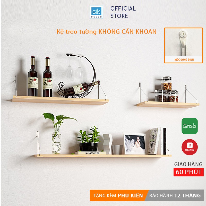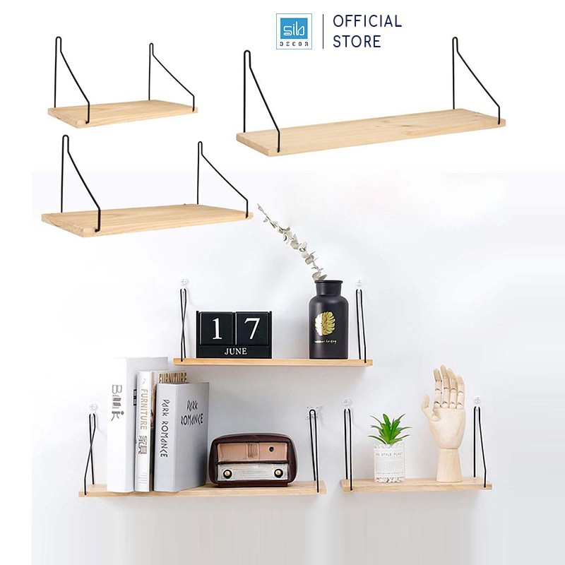 Nhà cửa & Đời sống > Nội thất > Kệ & Giá || Kệ Gỗ Trang Trí Treo Tường Không Cần Khoan SIB Decor Với Móc Treo Inox Và Đầy Đủ Phụ Kiện Tặng KèmCòn hàng