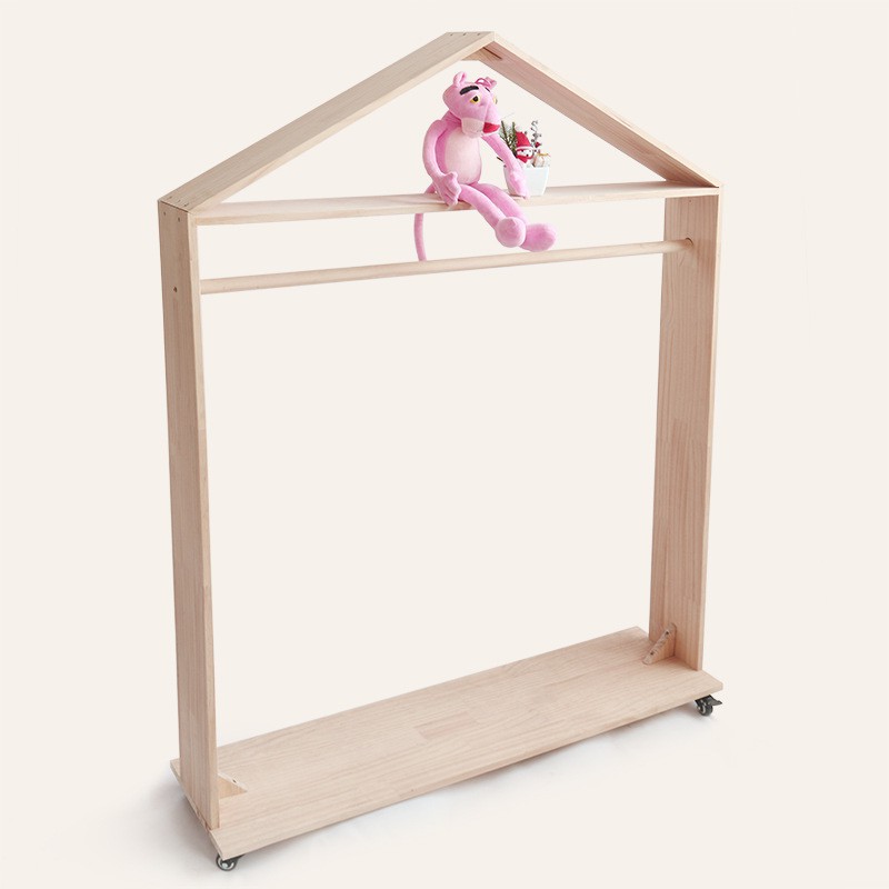 Kệ gỗ treo đồ Kệ treo quần áo shop trẻ em GU DECOR WOODEN giá treo quần áo có bánh xe trang trí shop thời trang
