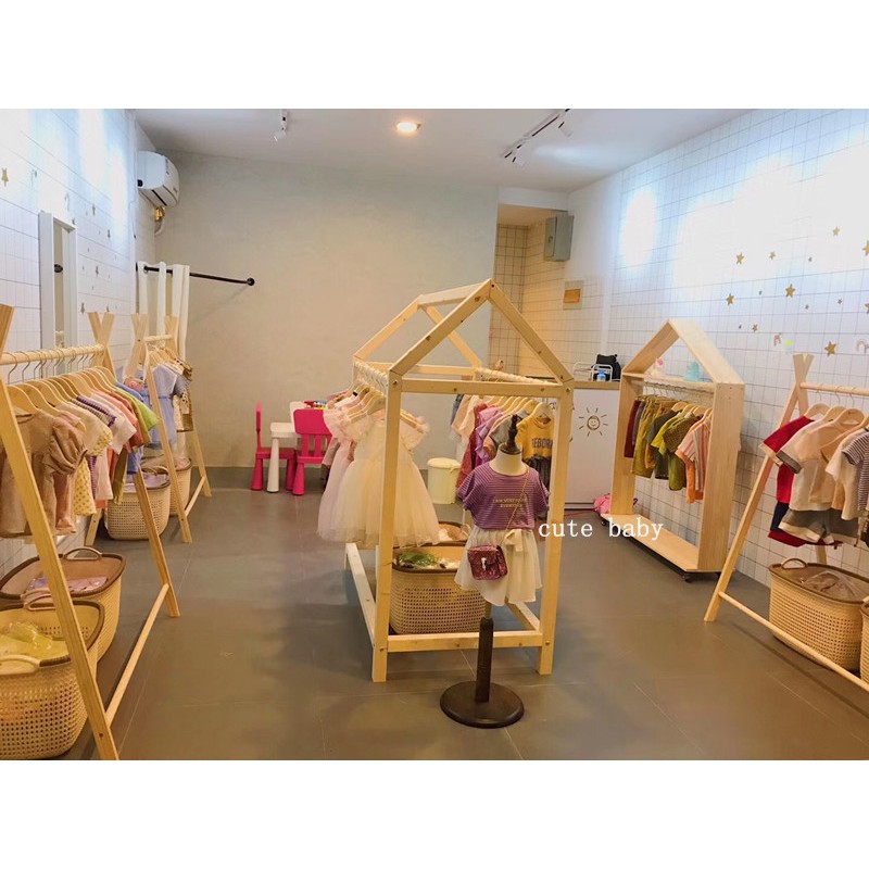 Kệ gỗ treo đồ Kệ treo quần áo shop trẻ em