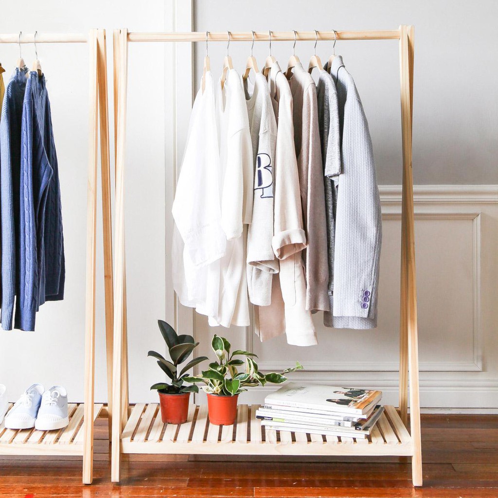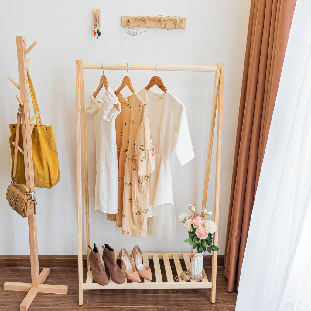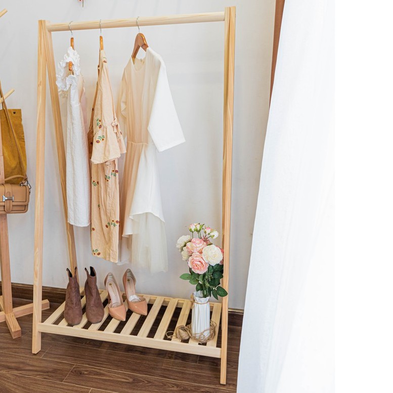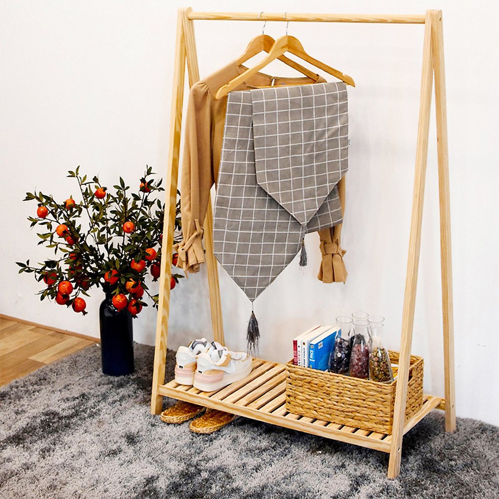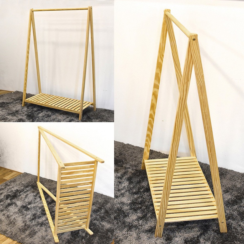 - Kệ gỗ treo quần áo chữ a 1 tầng gỗ thông dùng để treo và cất giữ quần áo trong phòng ngủ thay thế tủ đồ.