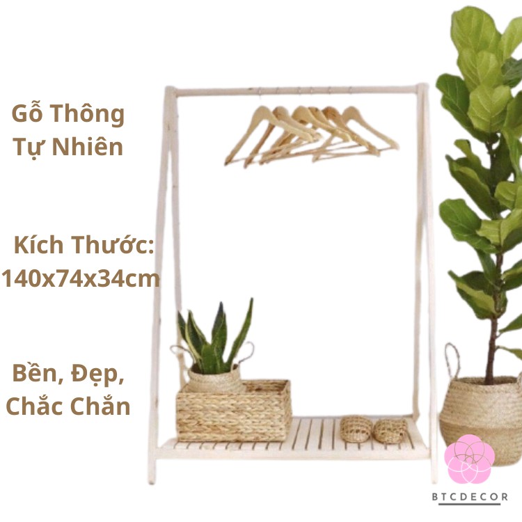 Kệ Gỗ Treo Quần Áo 1 Tầng Gỗ BTC DECOR - Giá Treo Quần Áo Chữ A GỖ THÔNG NHẬP KHẨU - Giàn Treo Đồ Đa Năng - BH 1 Năm