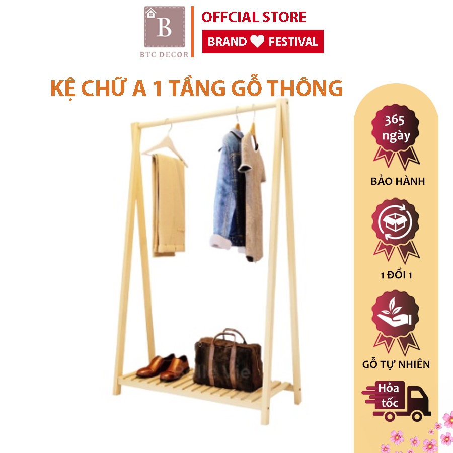 Nhà cửa & Đời sống > Nội thất > Kệ & Giá || Kệ Gỗ Treo Quần Áo 1 Tầng Gỗ BTC DECOR - Giá Treo Quần Áo Chữ A GỖ THÔNG NHẬP KHẨU - Giàn Treo Đồ Đa Năng - BH 1 NămCòn hàng