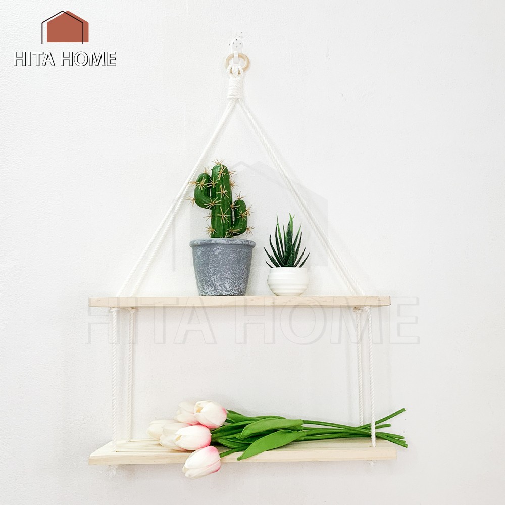 Sản phẩm kệ treo tường gỗ thông tặng đinh, dây của HITA home được sản xuất từ gỗ thông nhập khẩu, chắc chắn, dày dặn nhưng không quá cục mịch! Ảnh của chúng mình là ảnh thật nên bạn có thể hoàn toàn yên tâm mua hàng. Mỗi sản phẩm đều được tặng kèm dây thừng macrame và đinh (chúng mình sẽ tặng 2-3 đinh) để các bạn có thể tự đóng treo kệ theo kiểu hay vị trí yêu thích.