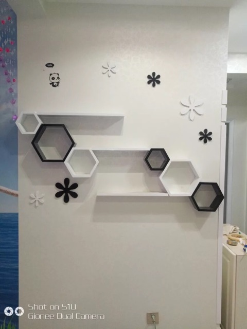 1 Kệ gỗ treo tường 3 hình lục giác hình tổ ong.