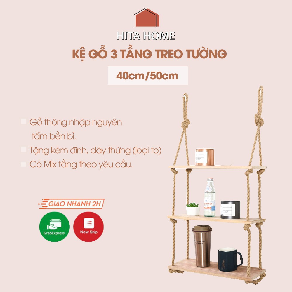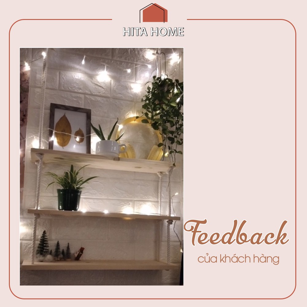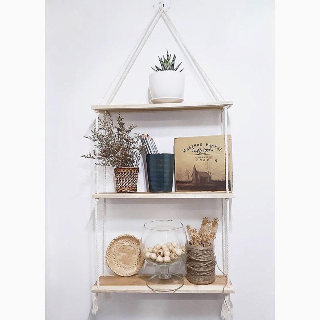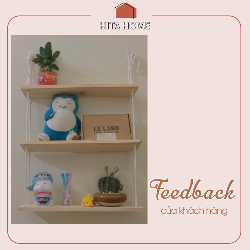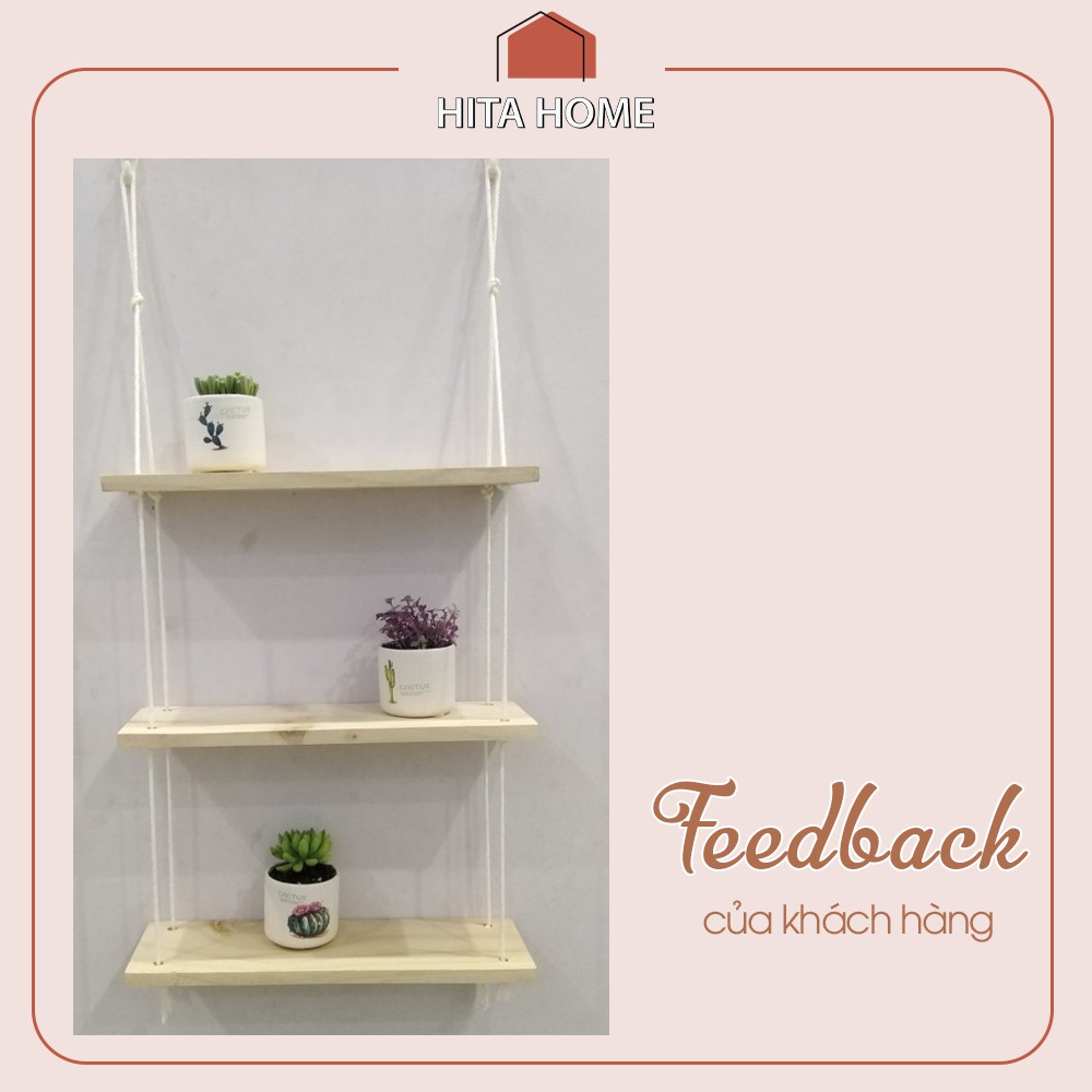 Bạn lưu ý là để đảm bảo độ chắc chắn thì kệ treo tường thì bọn mình luôn tặng dây thừng dày ạ! Kệ treo tường gỗ thông thích hợp để trang trí phòng ngủ, phòng khách thậm chí là các các quán cafe... Đây là món đồ decor xinh xắn có thể giúp bạn để cây cảnh nhỏ hay các món đồ xinh xắn khác.