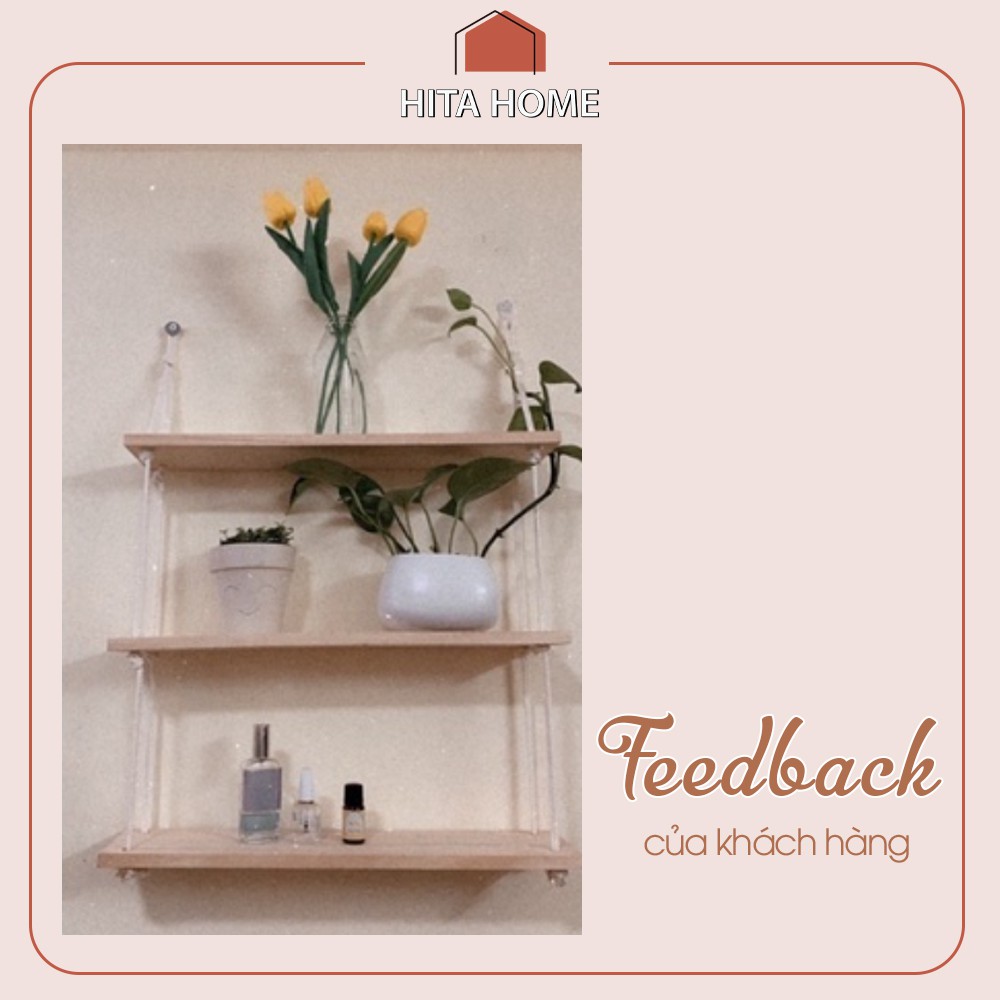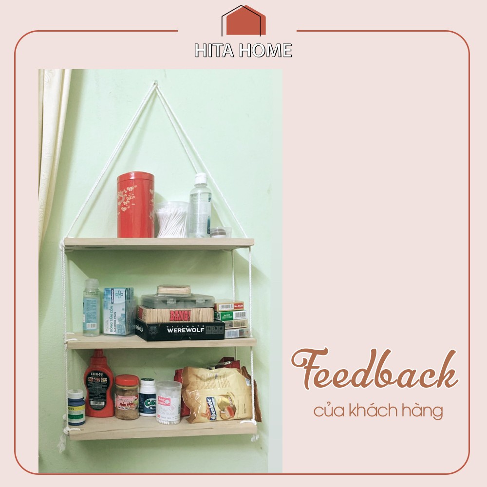 Sản phẩm kệ treo tường gỗ thông tặng đinh, dây của HITA home được sản xuất từ gỗ thông nhập khẩu, chắc chắn, nguyên tấm. Mỗi sản phẩm đều được tặng kèm dây thừng macrame và đinh (chúng mình sẽ tặng 1-3 đinh) để các bạn có thể tự đóng treo kệ theo kiểu hay vị trí yêu thích.