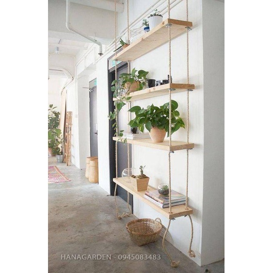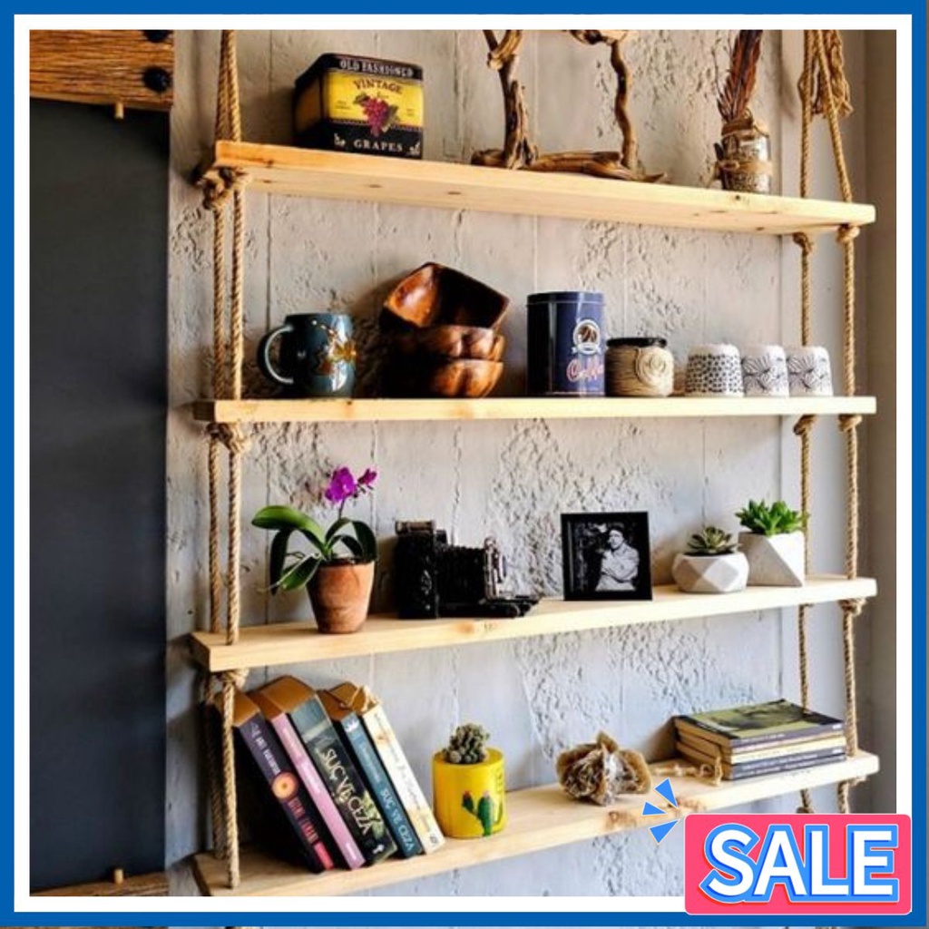 Kệ Gỗ Treo Tường 4 Tầng Đủ Kích Thước Kệ To Trang Trí Bằng Dây Thừng Trang Trí Gỗ Cao Su Ghép