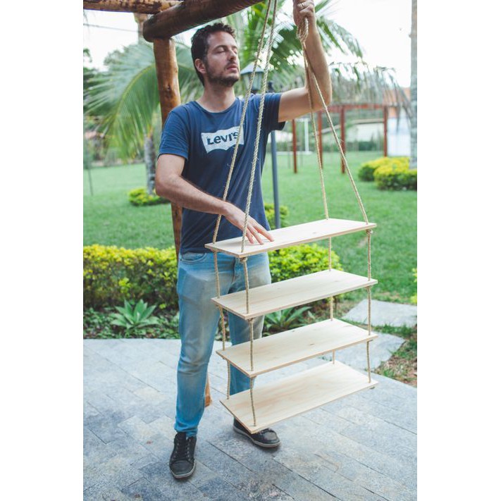 Giới thiệu Kệ Gỗ Treo Tường 4 Tầng Đủ Kích Thước Kệ To Trang Trí Bằng Dây Thừng Trang Trí Gỗ Cao Su Ghép