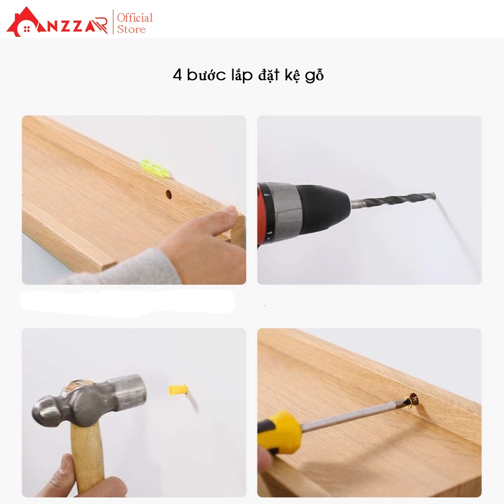 GHI CHÚ: Sản phẩm là bộ kệ gỗ treo tường + phụ kiện vít, nở nhựa để lắp đặt