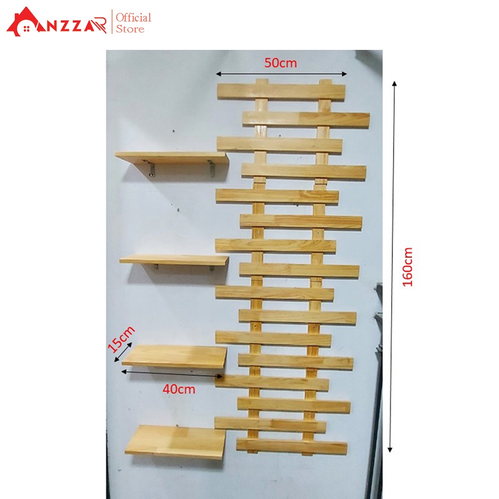 Kệ gỗ treo tường, kệ trang trí Anzzar, giá gỗ thông treo tường trang trí ban công, ngoại thất đẹpThông tin sản phẩm: