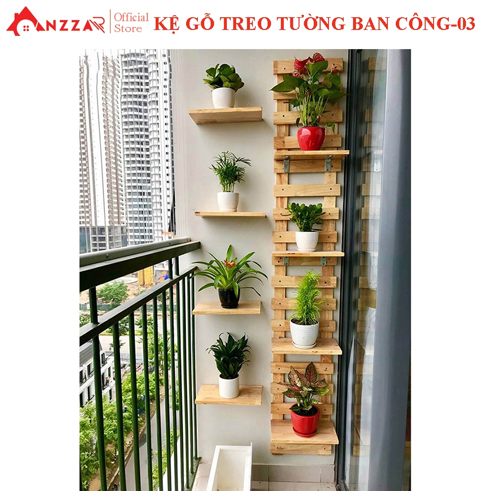 Nhà cửa & Đời sống > Nội thất > Kệ & Giá || Kệ gỗ treo tường ban công Anzzar nhiều kích thước, gỗ thông nhập khẩu để chậu hoa, cây cảnh trang trí nhà cửaKBC-03Còn hàng