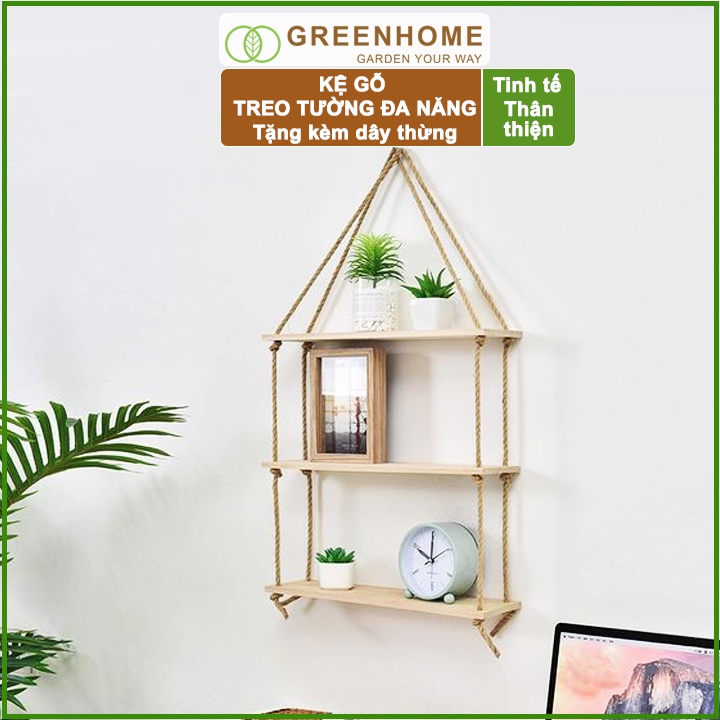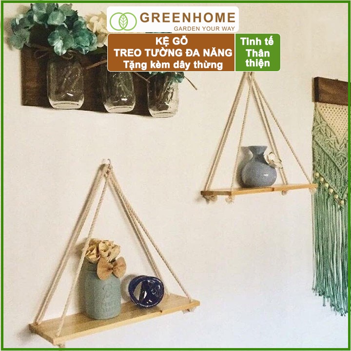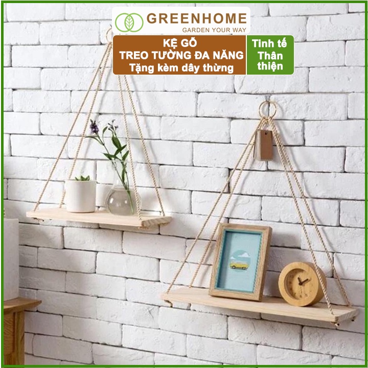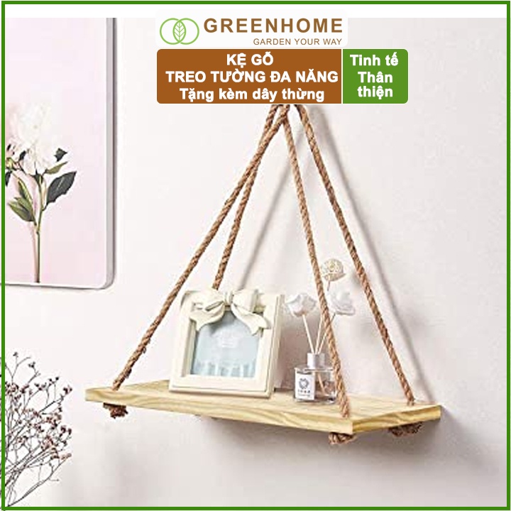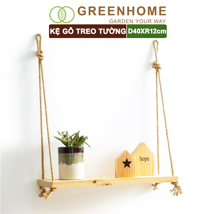 Nhà cửa & Đời sống > Nội thất > Kệ & Giá || Kệ gỗ treo tường, D40xR12cm, gỗ thông, tặng kèm 2m dây thừng |GreenhomeCòn hàng