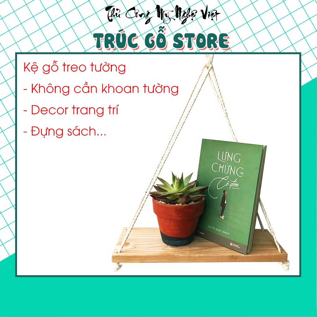 Nhà cửa & Đời sống > Nội thất > Kệ & Giá || Kệ gỗ treo tường đa năng trang trí/decor tặng kèm dây thừng và móc treo - Trúc Gỗ StoreCòn hàng
