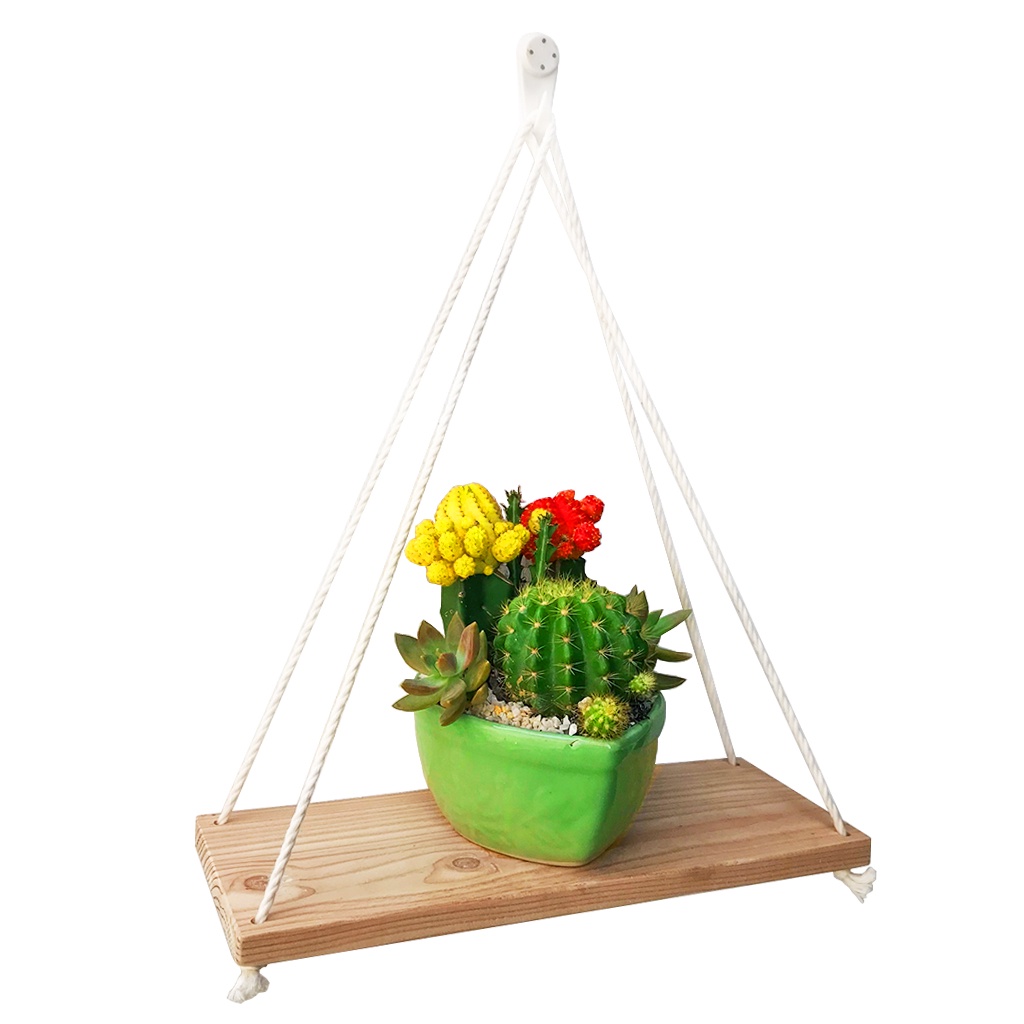 Kệ gỗ treo tường đa năng trang trí/decor tặng kèm dây thừng và móc treo - Trúc Gỗ Store