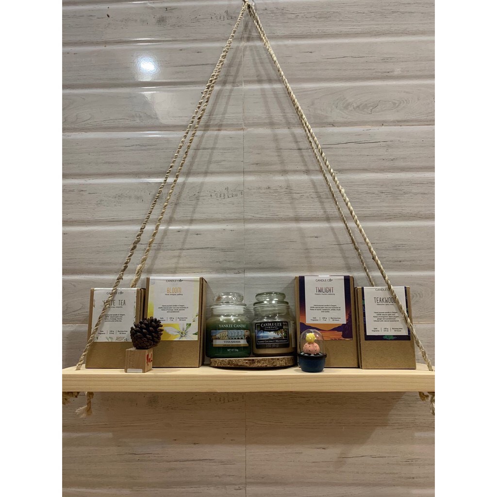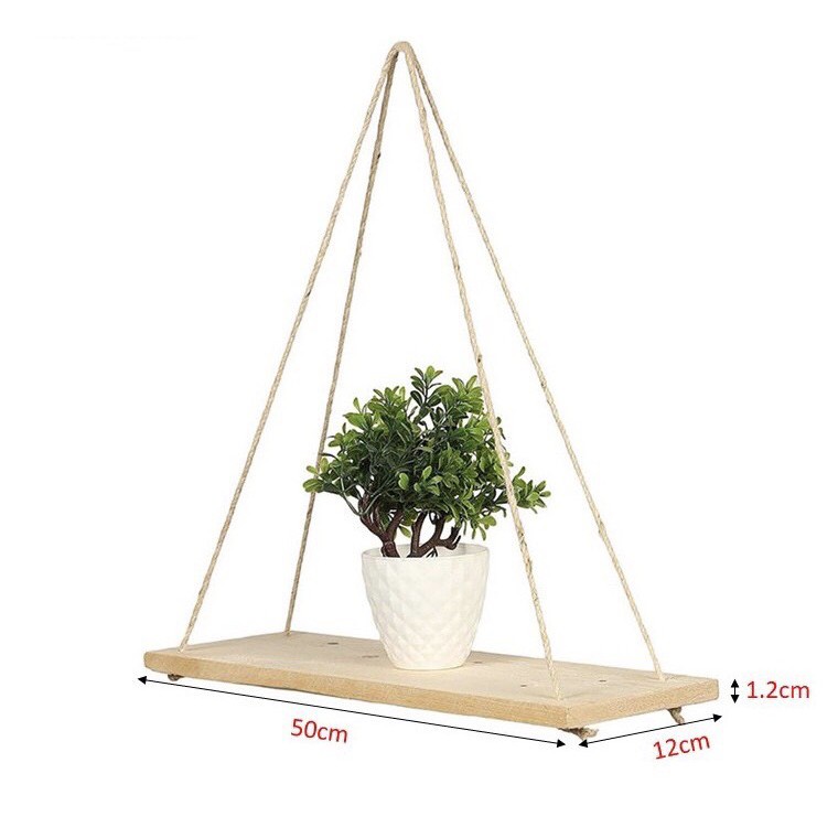 Kệ gỗ treo tường dây thừng decor, trang trí nhà cửa phong cách vintage - Kệ gỗ thông không cần khoan