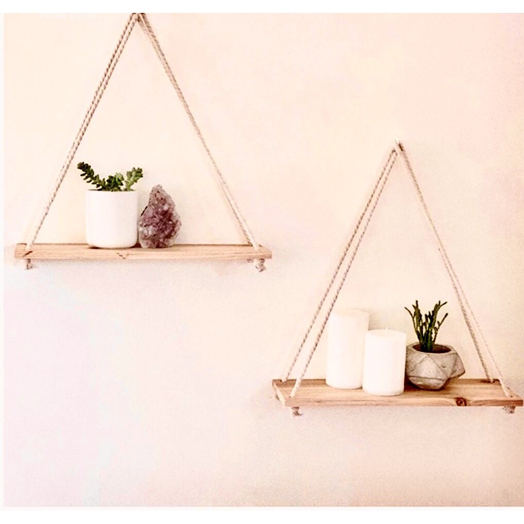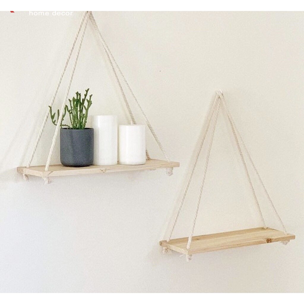 Nhà cửa & Đời sống > Nội thất > Kệ & Giá || Kệ gỗ treo tường dây thừng decor, trang trí nhà cửa phong cách vintage - Kệ gỗ thông không cần khoanCòn hàng