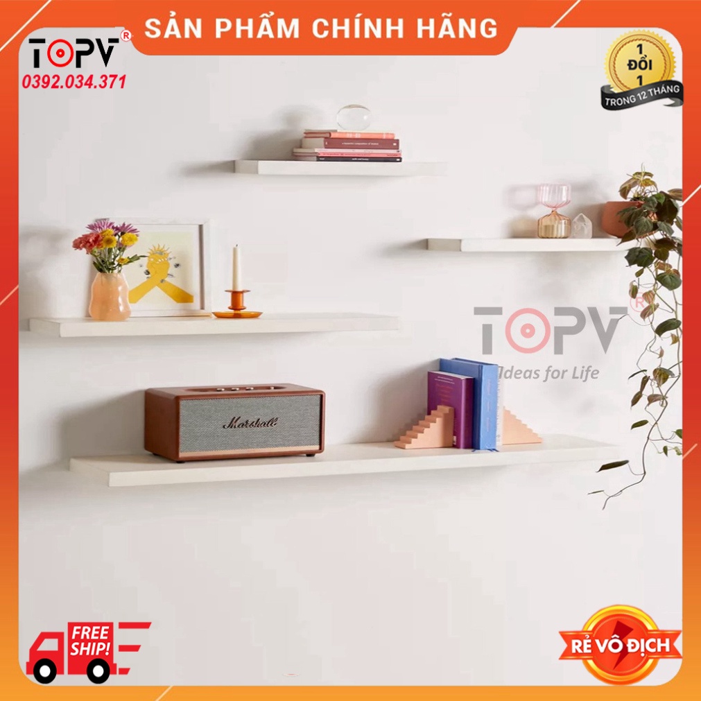 - Kệ gỗ treo tường của TOPV được thiết kế tinh tế có thể dấu đi hệ thống đinh vít nên khi trang trí lên tường sẽ rất đẹp và sang trọng.