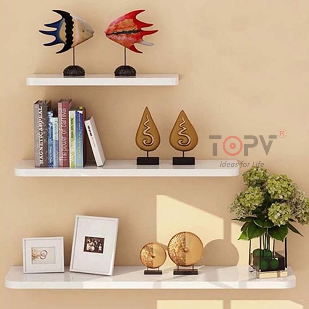 - Kệ gỗ treo tường của TOPV được thiết kế tinh tế có thể dấu đi hệ thống đinh vít nên khi trang trí lên tường sẽ rất đẹp và sang trọng.