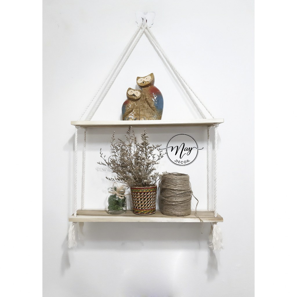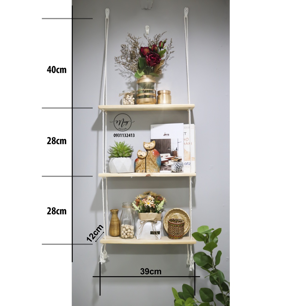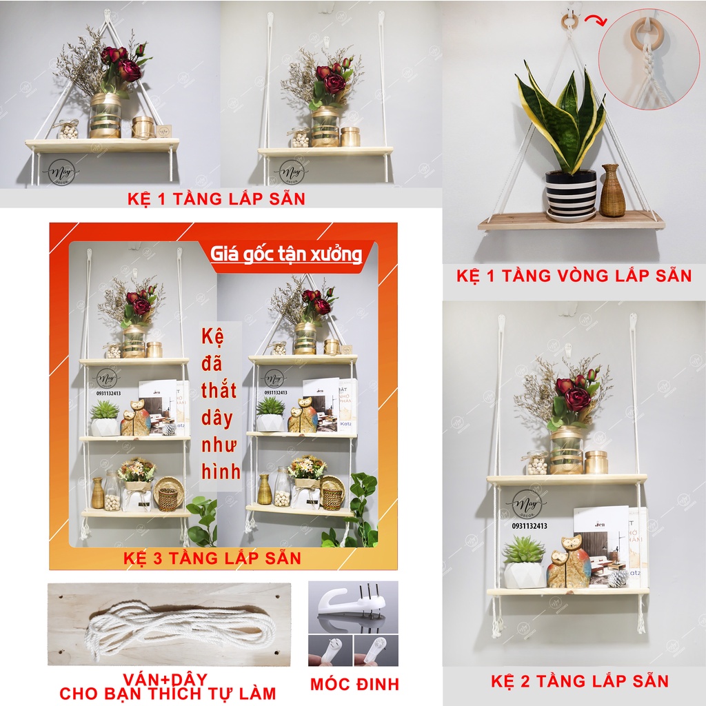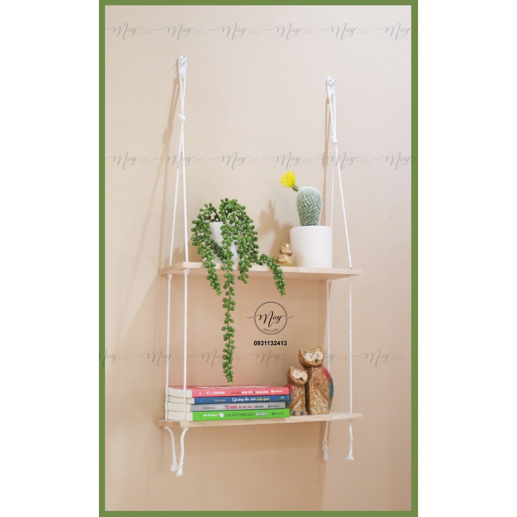 - Sản phẩm đã được thắt sẵn thành kệ, bạn chỉ việc nhận hàng và treo lên thôi, giúp bạn tiết kiệm nhiều thời gian, Kệ hoàn toàn là gỗ tự nhiên KHÔNG PHẢI GỖ ÉP nên bạn lưu ý khi so sánh giá với những shop khác giúp mình nhé.