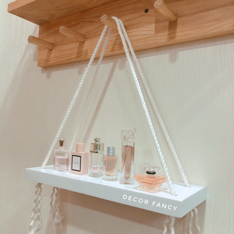 Nhà cửa & Đời sống > Nội thất > Kệ & Giá || Kệ gỗ treo tường màu trắng, Kệ treo đa chức năng (kèm dây thừng) - Decor FancyCòn hàng