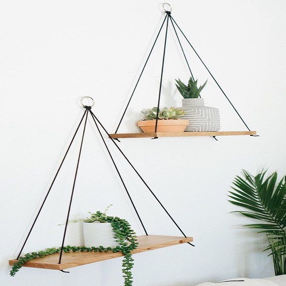 Nhà cửa & Đời sống > Nội thất > Kệ & Giá || Kệ Gỗ Treo Tường Nhỏ Xinh GIÁ XƯỞNG Bằng Dây Treo Kết Hợp Vòng Kim Loại Phong Cách Retro DIYCòn hàng