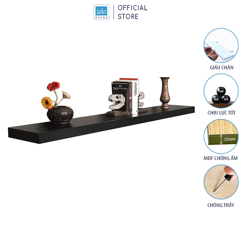Nhà cửa & Đời sống > Nội thất > Kệ & Giá || Kệ Gỗ Treo Tường Thanh Ngang Thương Hiệu SIB Decor Màu Đen, Gỗ Dày 25mm Chống Ẩm - Kèm Phụ Kiện Và Thước Cân BằngCòn hàng