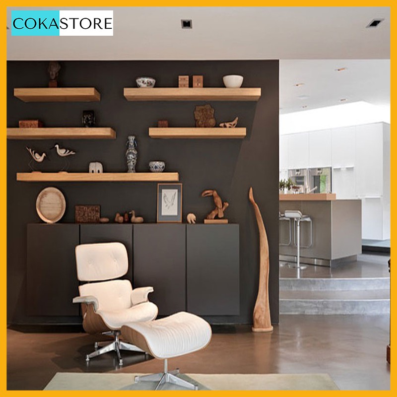 Giới thiệu Kệ Gỗ Treo Tường Thanh Ngang Kết Cấu Giấu Chân Chắc Chắn, Gỗ Dày 2,5cm (Màu Vân Gỗ) + Tặng Kèm Thước Thủy