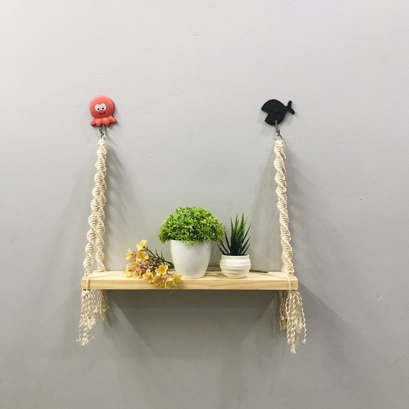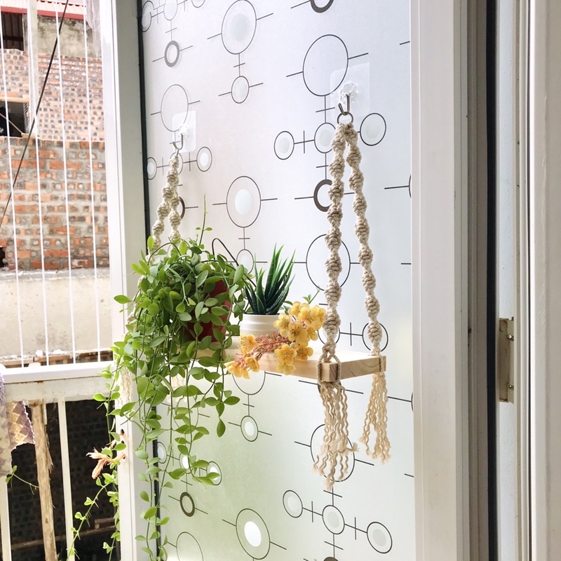 kệ gỗ treo tường thắt macrame - kệ gỗ dây hoạ tiết