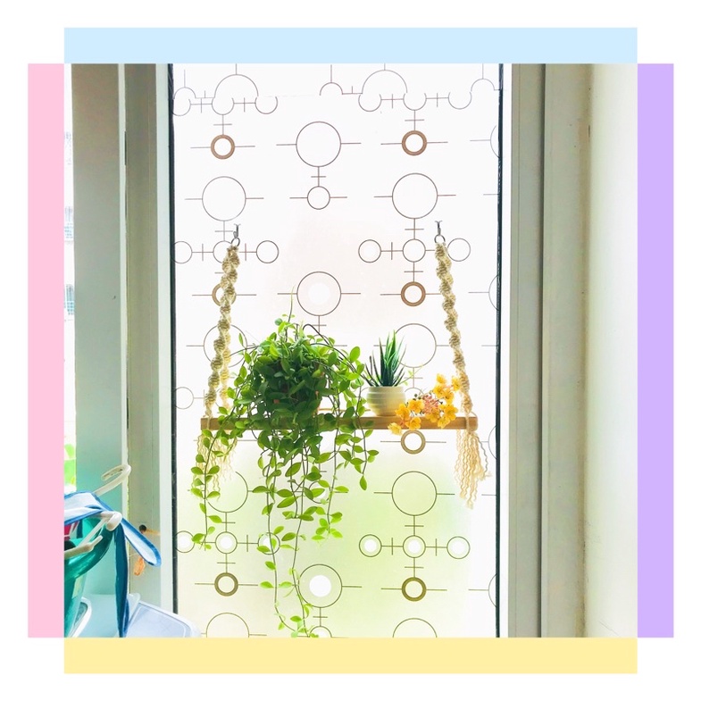 Giới thiệu kệ gỗ treo tường thắt macrame - kệ gỗ dây hoạ tiết