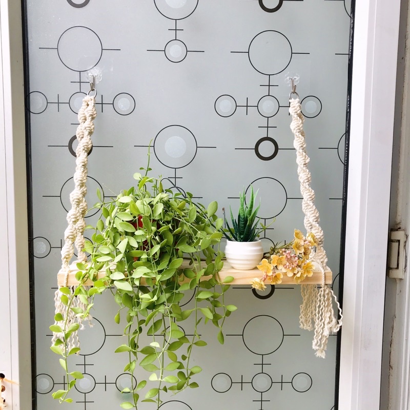 Nhà cửa & Đời sống > Nội thất > Kệ & Giá || kệ gỗ treo tường thắt macrame - kệ gỗ dây hoạ tiếtCòn hàng