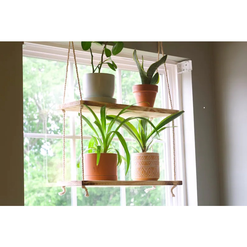 Nhà cửa & Đời sống > Nội thất > Kệ & Giá || Kệ Gỗ Treo Tường Trang Trí Dây Thừng Boho Rustic 2 Tầng để đổ lưu niệm cây cảnh mini gỗ thôngCòn hàng