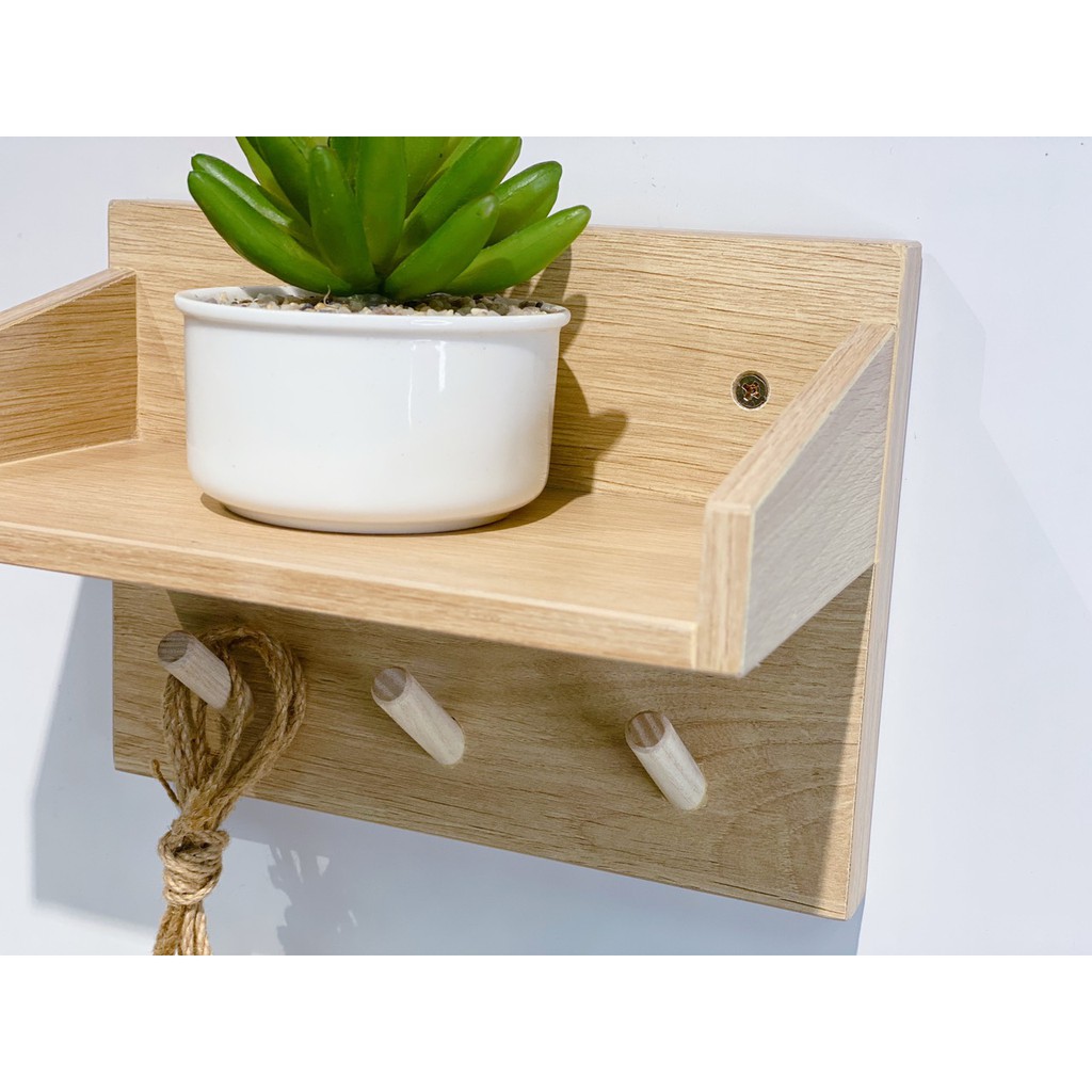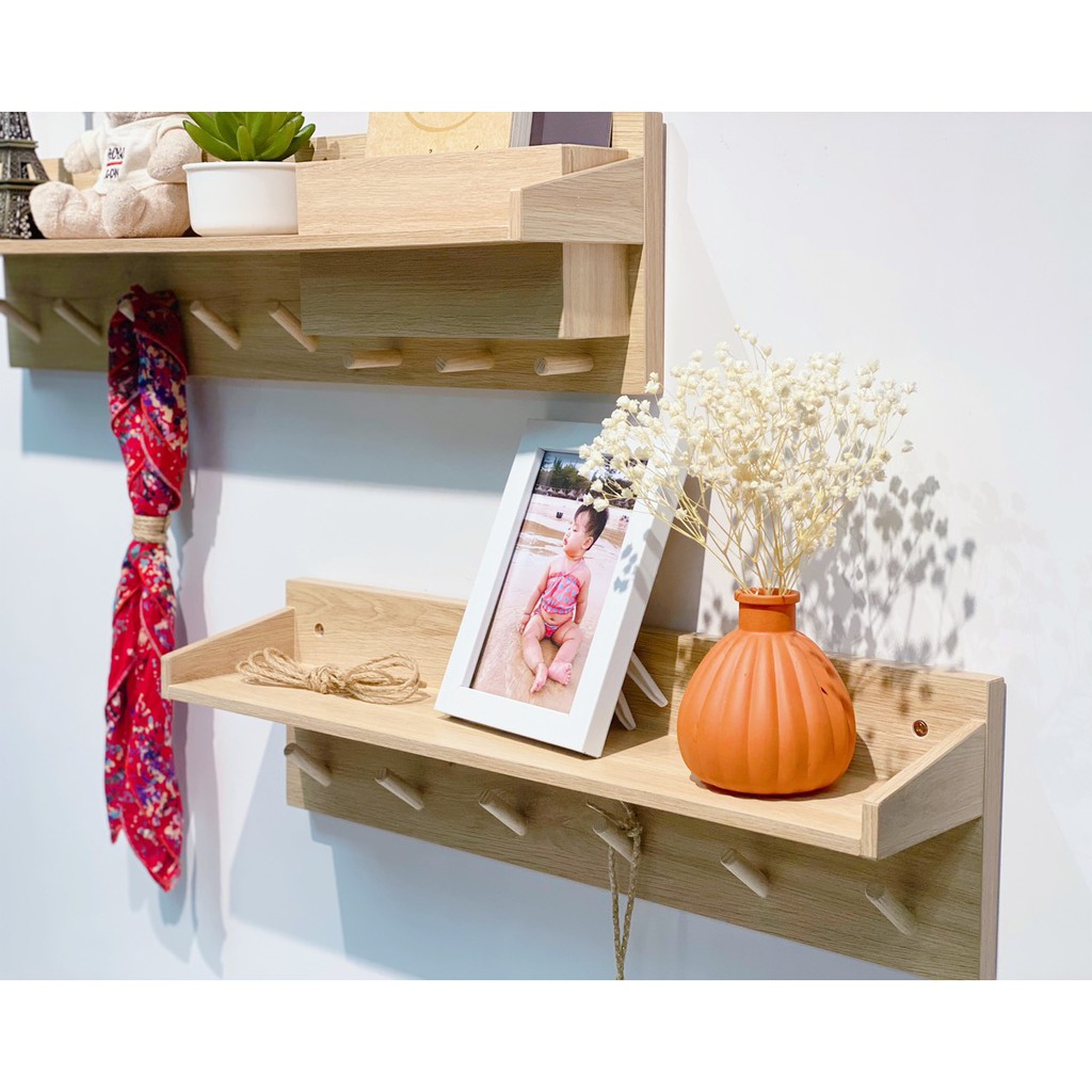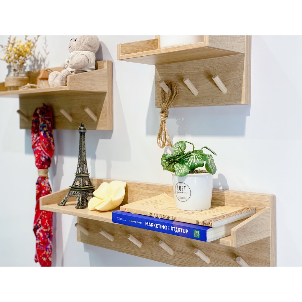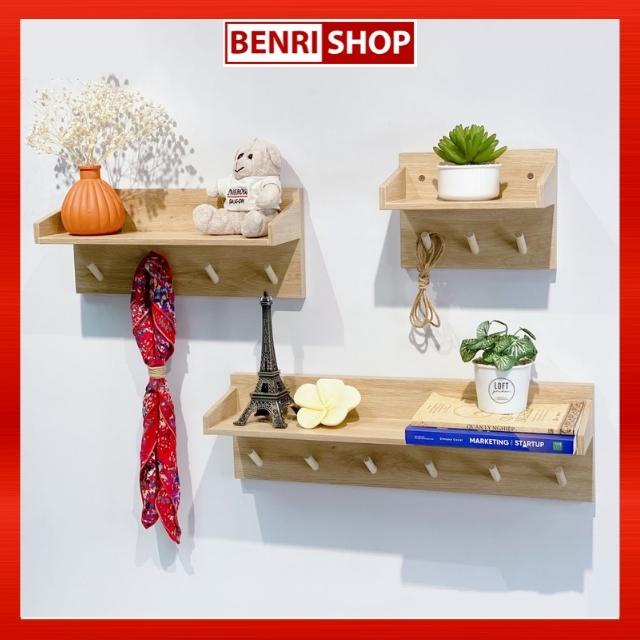 Kệ gỗ treo tường trang trí,để đồ,để sách có móc treo quần áo,treo phụ kiện-BENRI SHOP