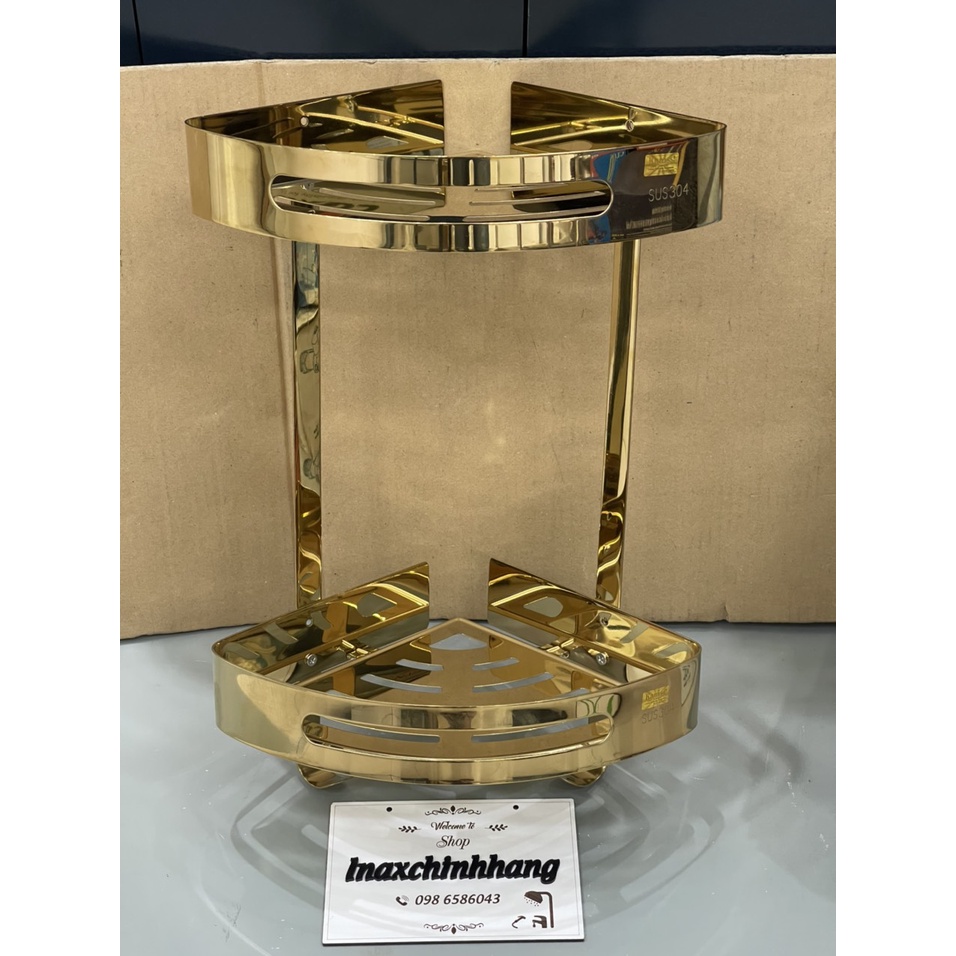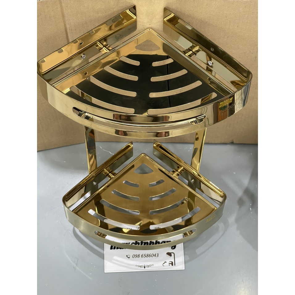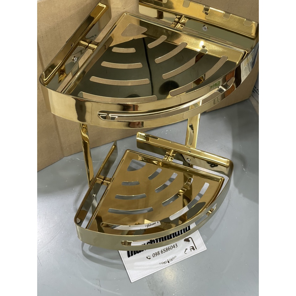 KỆ GÓC 2 TẦNG INOX TẤM MẠ VÀNG - HÀNG CHẤT LƯỢNG DÀY DẶN VÀ ĐẸP