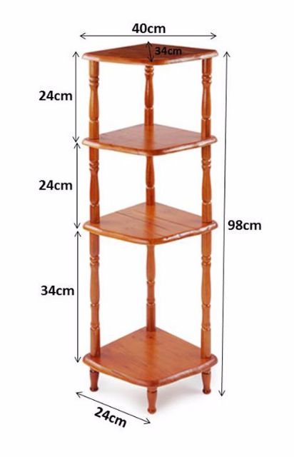 Kệ góc tường gỗ 4 tầng loại nhỏSản phẩm nhỏ gọn và rất đẹp, phù hợp để những món đồ nhỏ trong gia đình, hay ở góc bếp..