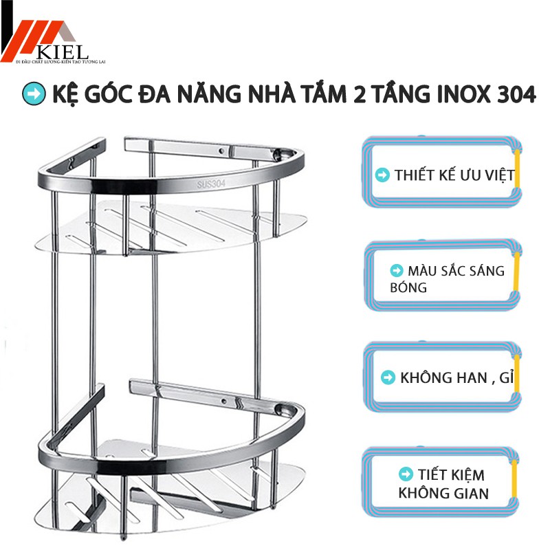 Kệ góc đa năng nhà tắm 2 tầng inox 304 cao cấp không gỉ phù hợp đặt ở nhiều loại không gian khác nhau .