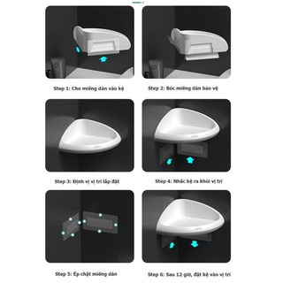 Gắn kệ vào vị trí cố định và cho các vật dụng vào (Đảm bảo 12 giờ sau khi miếng dán dính vào tường).