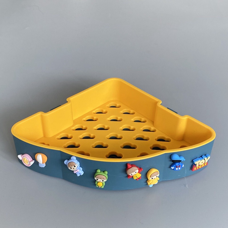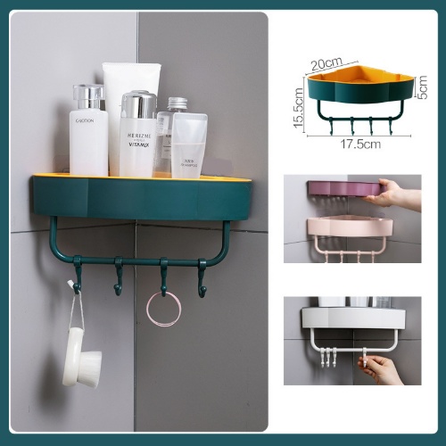 + Kệ tam giác dán góc tường thiết kế hình tam giác giúp tận dụng tiết kiệm không gian phòng tắm.