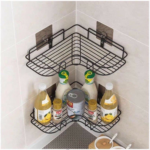 - Kệ góc, Giá đỡ treo dán góc tường dễ dàng tháo lắp nơi phòng tắm, nhà bếp, phòng ngủ đựng mỹ phẩm, gia vị.