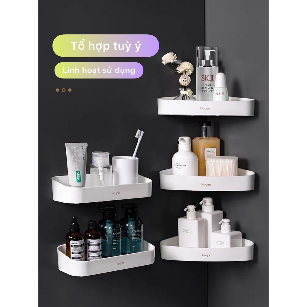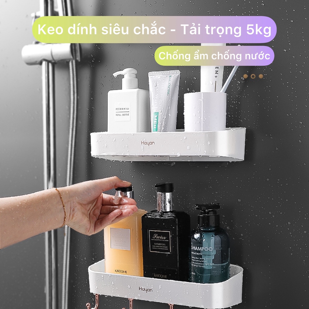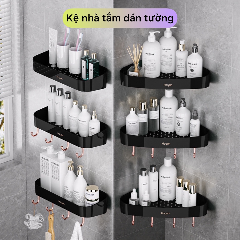 Kệ góc dán tường để đồ nhà tắm, nhựa ABS cao cấp kèm móc treo , chữ nhật để dầu gội sữa tắm hũ đựng gia vị dụng cụ bếp