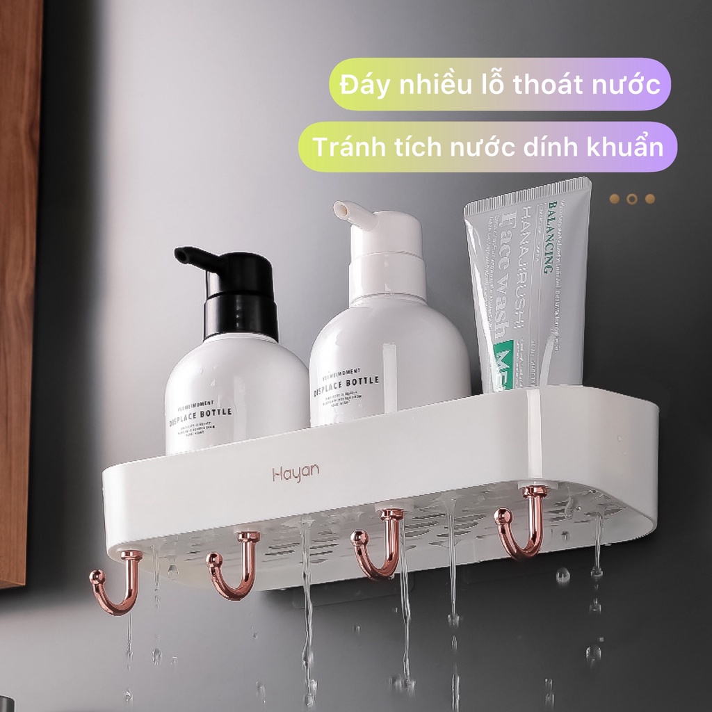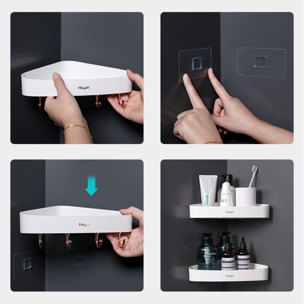 Giới thiệu Kệ góc dán tường để đồ nhà tắm, nhựa ABS cao cấp kèm móc treo , chữ nhật để dầu gội sữa tắm hũ đựng gia vị dụng cụ bếp